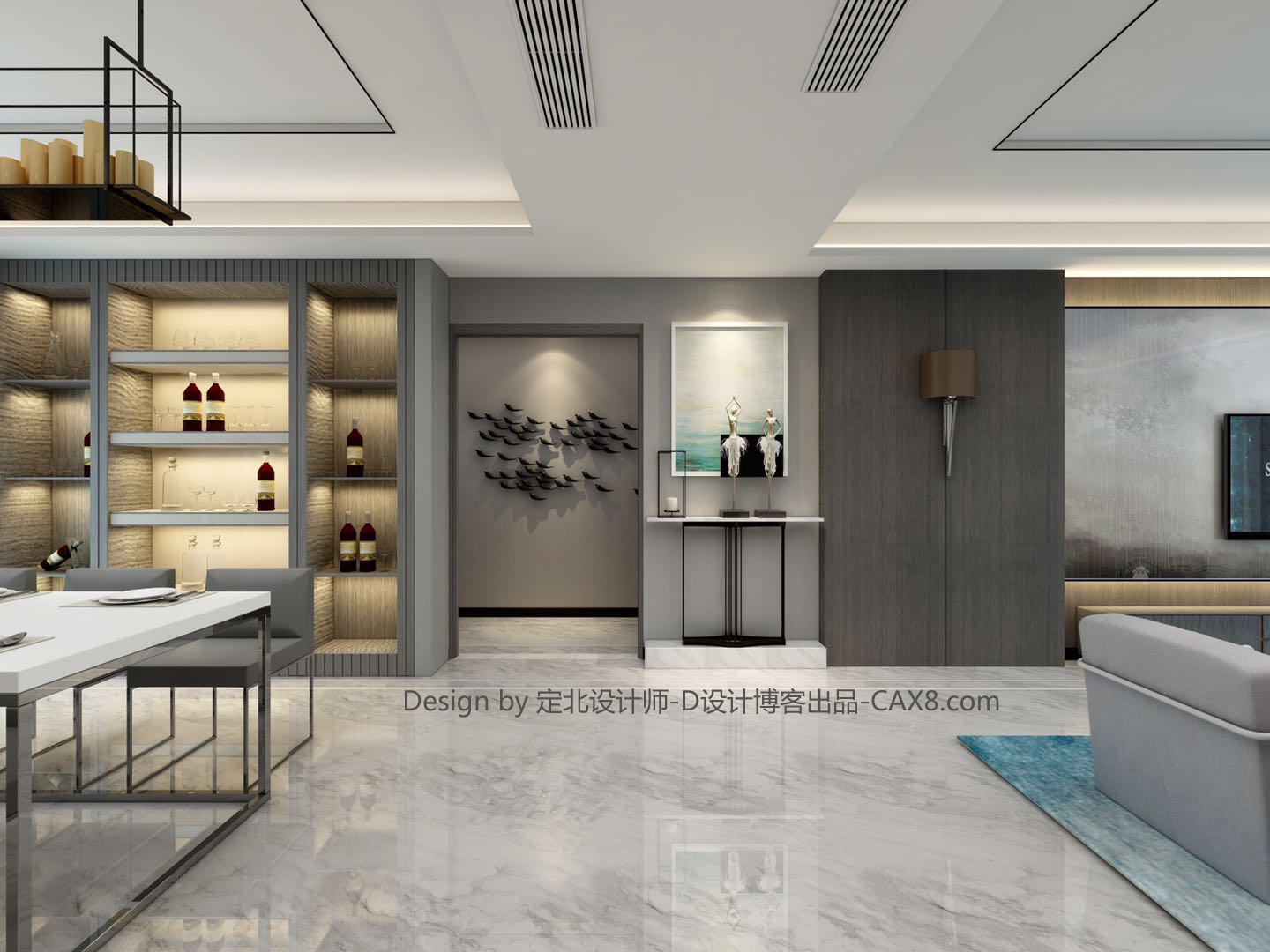 簡介這是黑白灰簡約工業風的客廳與餐廳效果圖